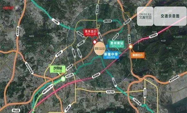 项目往东直达惠州南站、并与惠阳主干民路、开城大道直线相连,同时可到达淡水的商务中心与街;