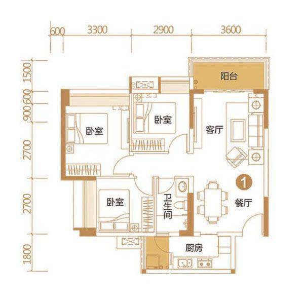 103㎡三房:92.59%实用率,总价门槛约195万起