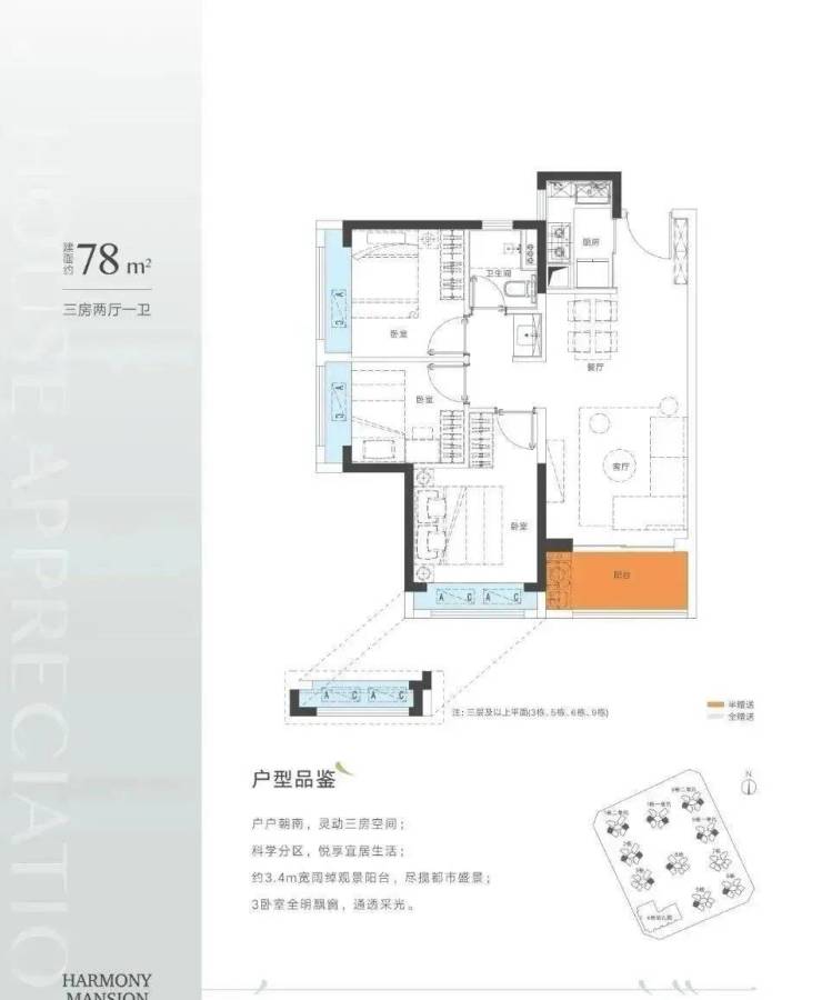 78-81平三房,约305-345万,3成首付91-104万