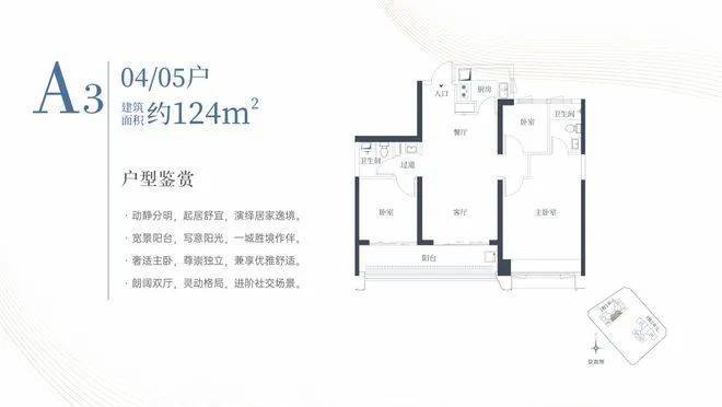 1栋一单元A3户型:面积约为124㎡