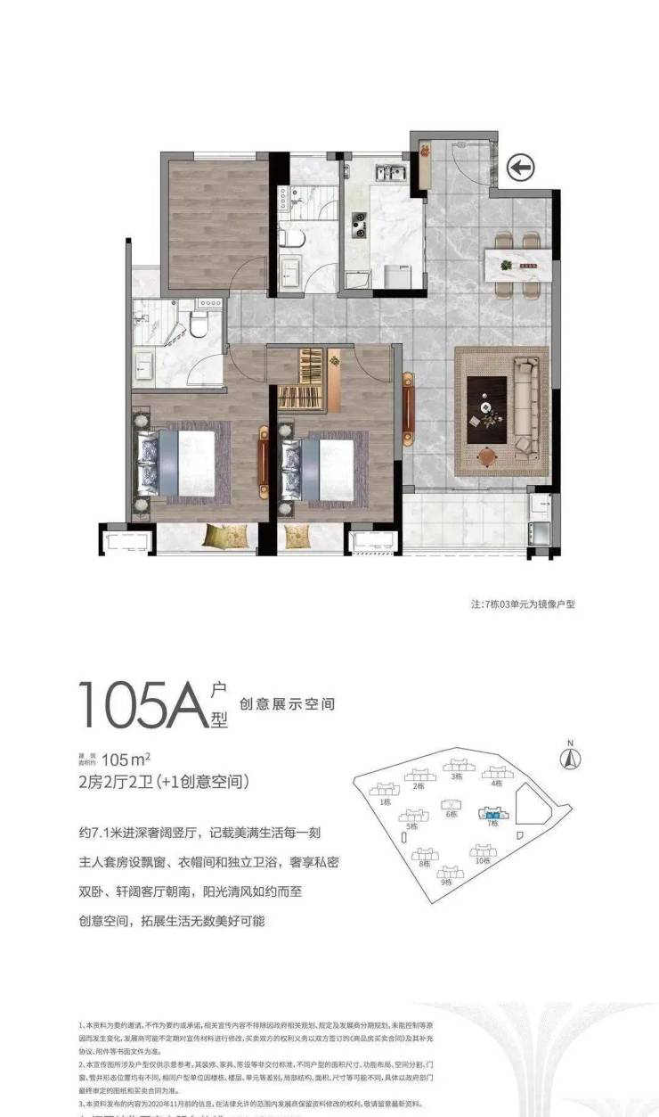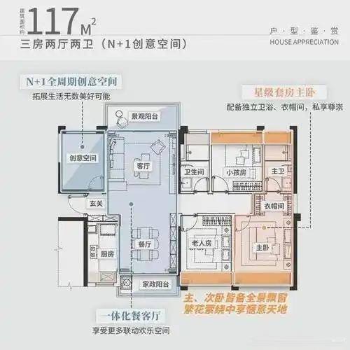 117㎡四房 7米景观阳台+双主卧 送全屋家电包