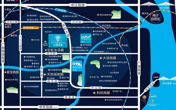 立体路网:10分钟接驳中山西区高速口,25分钟直达中山北站(广珠轻轨)