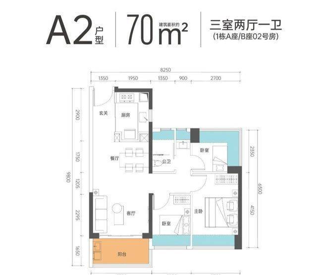 位于深圳市坪山高新区大学城的传承启元是这两年入市的新房中,最小面积的3房,仅70㎡,其中A1户型还是横厅设计,户型可以说是相当“炸裂”了。
