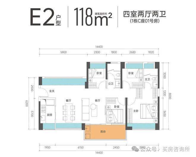 约89㎡南向3房,相比于市面上同功能3房,面积更小;约118㎡阔绰4房,带6.6米阳台,满足进阶生活更高享受。