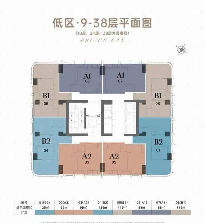 •建筑形态:194米超高层塔楼,共50层,分为低区(9-38层)、高区(39-48层)及顶层(49-50层),梯户比从低区4梯8户到顶层4梯4户逐级优化。