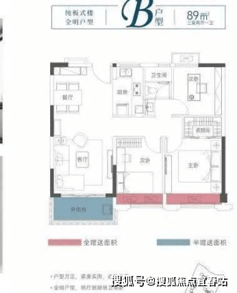 B户型 89㎡ 三房两厅一卫