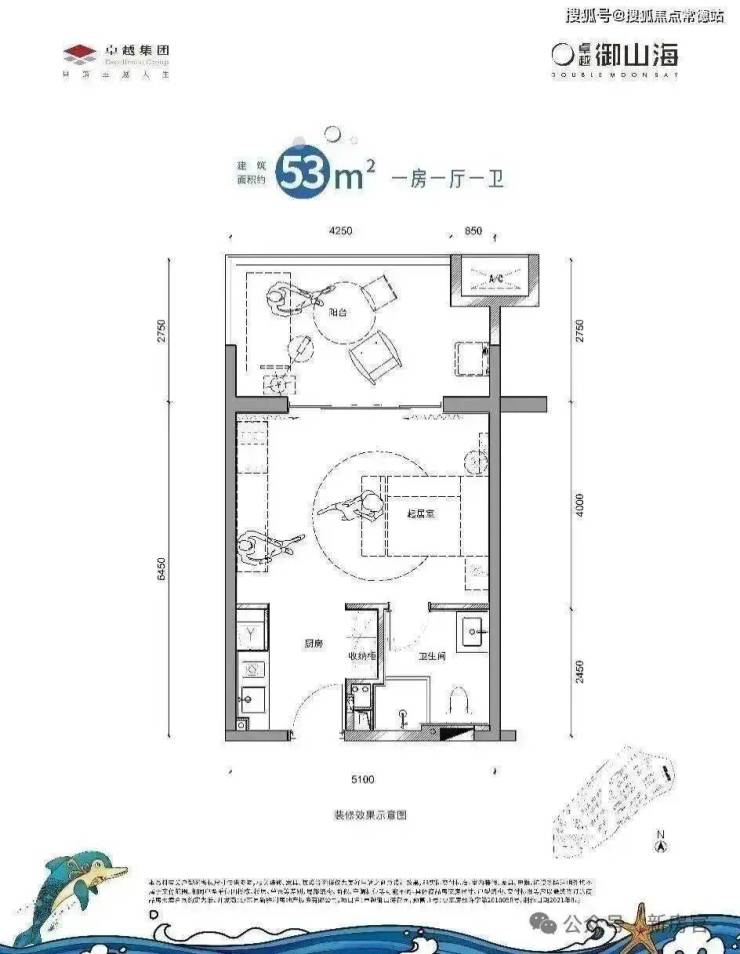 ▲53㎡样板间实景图 片区在售唯一开间达5.1米单房户型 ,视觉更宽广,景观面丰富动人, 阔绰阳台,承载舒阔假日时光, 超大采光面,一览山海景观。