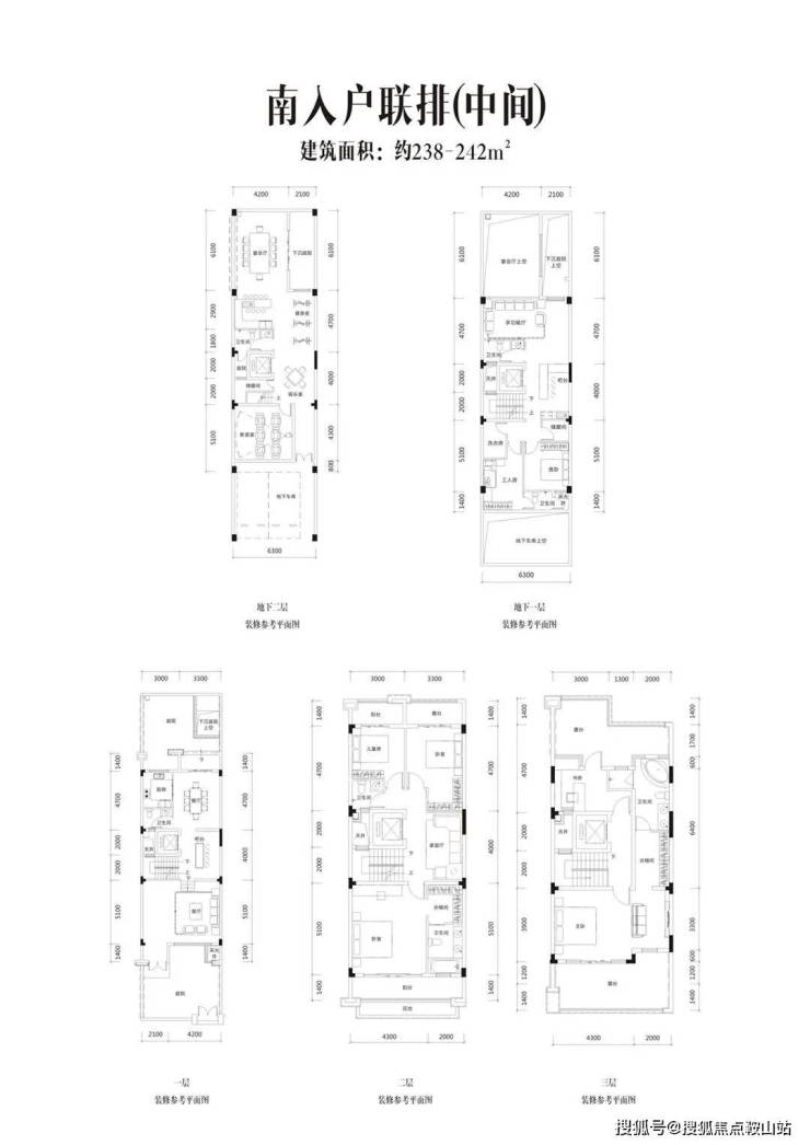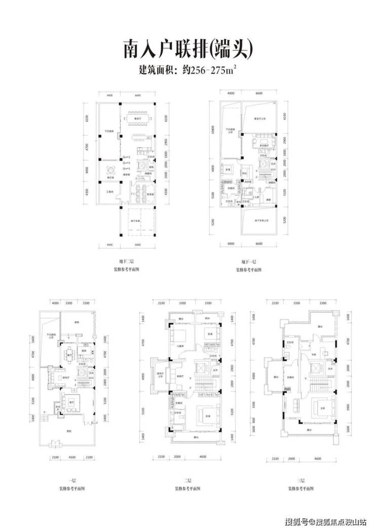 8、【在售产品】约251㎡端头/238㎡中间错层联排;约256-287㎡端头/约239-268㎡中间南北入户联排