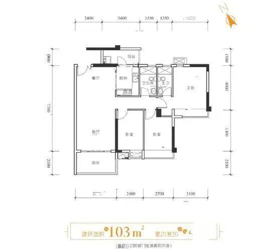 103㎡三房:92.59%实用率,总价135万起(区域最低门槛四房)