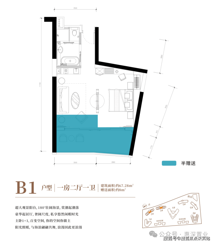 ⭐豪华型一房一厅瞰海产品:全海景横厅设计⭐