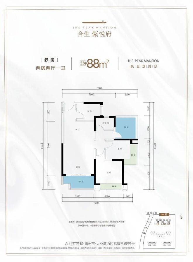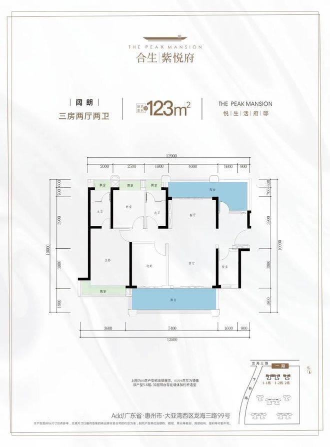 开发商是大亚湾合盛实业有限公司,项目总占地约12.5万平,总建面约50万平,共分2期开发,共15栋住宅加1栋公寓,一所小学以及幼儿园,总户数3075户,车位数4112个,容积率3.0,物业公司为国家一级资质物业康景物业,目前在售一期的1栋和2栋,户型有88-105平的三房,123平的4房!