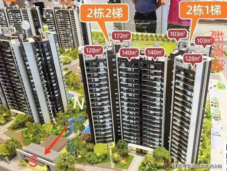 2栋1梯:103/128/140m户型;2栋2梯为两梯三户设计,有约140/172m户型,共计127套房源。(精装)