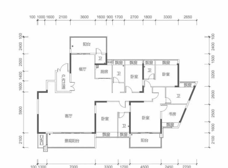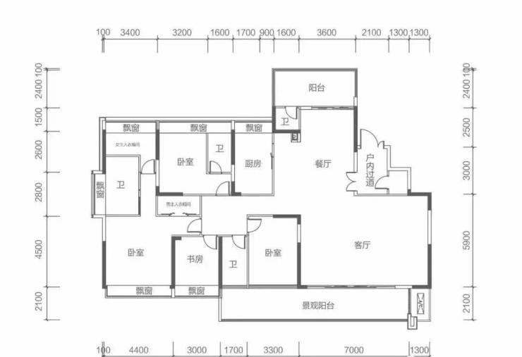 7栋奇数层 M户型建面约260㎡ 5房2厅5卫