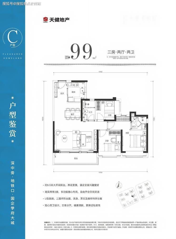 99㎡的3房2厅2卫,折后总价约320-330万,单价约3.2-3.4万/㎡。