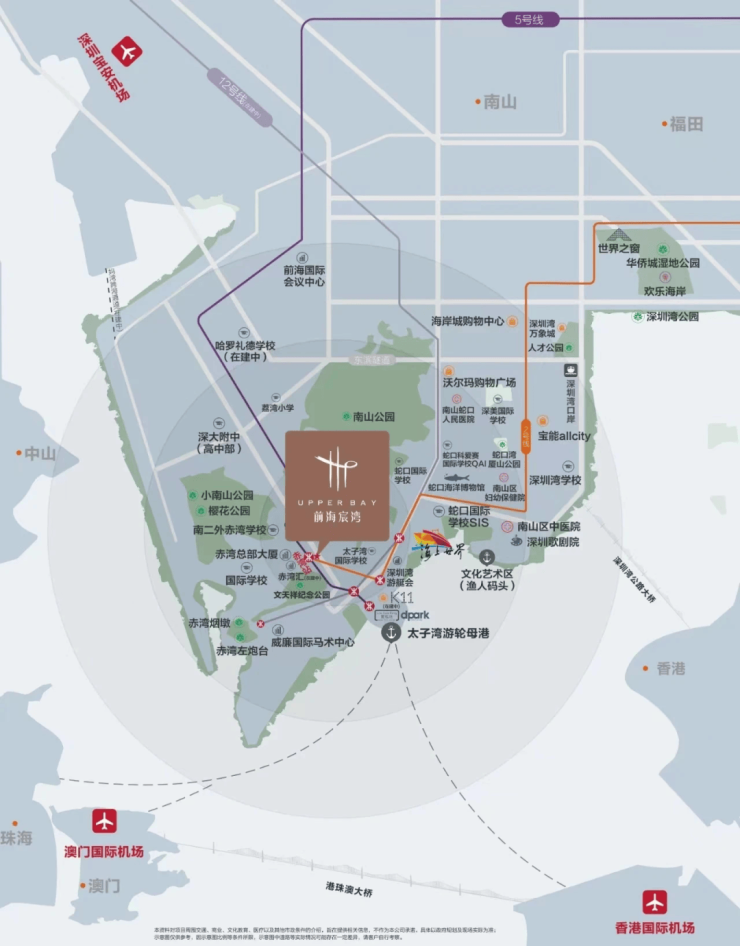 蛇口国际海洋城(在建中),南山“三大示范工程”之一,规划总面积约26平方公里,未来五年将带动约3000 亿产值。前海宸湾,落位蛇口国际海洋城关键承载区,坐享区域前沿发展红利。同时项目北靠南山,东临蛇口、西接前海,毗邻妈湾及太子湾两大港口雄踞大湾区、前海蛇口自贸区的双区中轴位置,前海扩容后更是成为大前海内部各区域的核心枢纽。