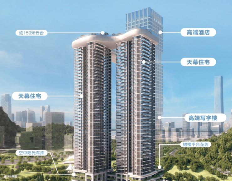 赤湾前海宸湾,又叫伴山伴海,包含两栋150米的住宅,和一栋200米的办公+酒店。