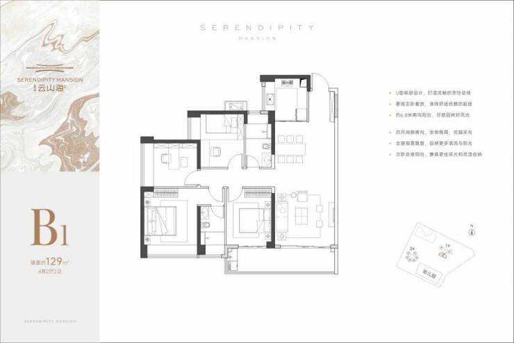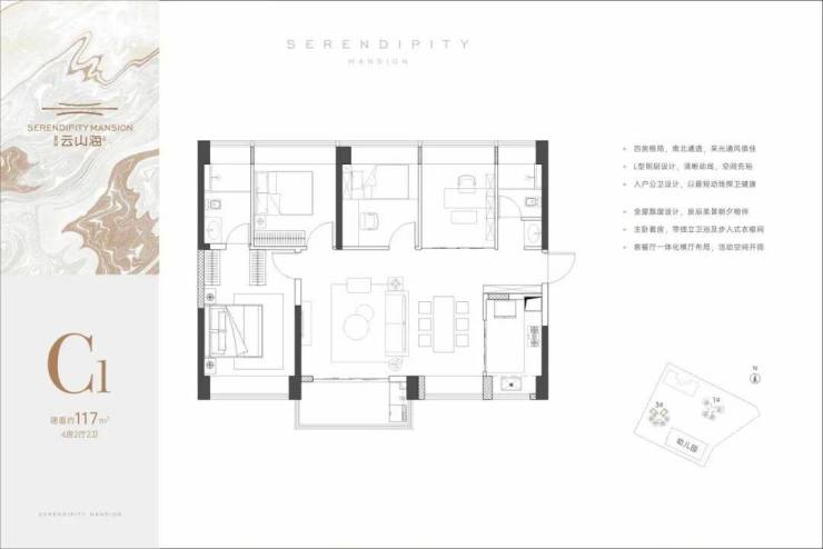 设计上跟建面约116㎡B2户型类似,不过公摊、尺寸和细节上有不同。该户型取消了小次卧的L型飘窗设计,采用了大阳台的设计横穿到次卧,主朝向的视野更开阔。动静分区,四开间南向。经典的竖厅格局,动静分离,一体化餐客厅让空间观感更通透。约6.8米南向阳台视野开阔,次卧连接阳台可以看到园林景观,绿意在前,在阳台晾晒衣服时也是一种享受。经典的竖厅格局,动静分离。客厅、厨房、餐厅和阳台也能实现空间一体化,构成家的核心区。