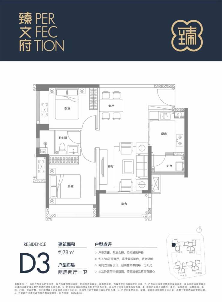 臻文府,由坪山本地房企六和集团打造,也是六和城二期,总占地面积约0.92万㎡,总建筑面积约6.85万㎡,计容建筑面积约5.32万㎡,容积率5.76,绿化率25%,共由4栋总高31层住宅组成,分别是1栋/1/2/3/4单元,另外配建1所9班制幼儿园。总规划520户,1栋1/4单元是2梯5户,1栋2/3单元是2梯4户,地下2层,停车位358个,停车位占比约1:0.69。