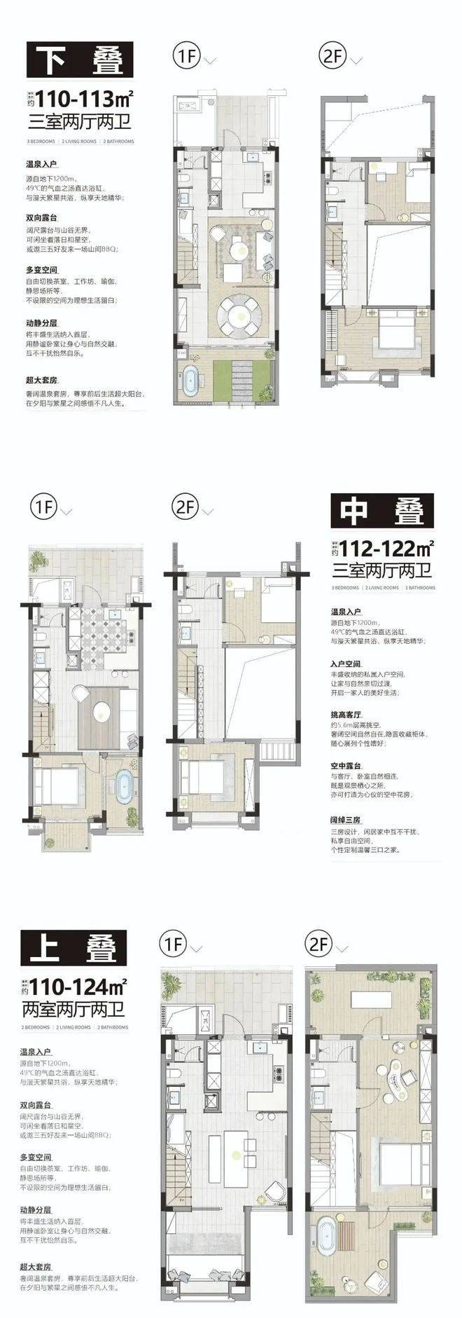 二期4号楼、8号楼、9号楼、10号楼共计100套,分别有【下叠】+【中叠】+【上叠】三种类型de别墅