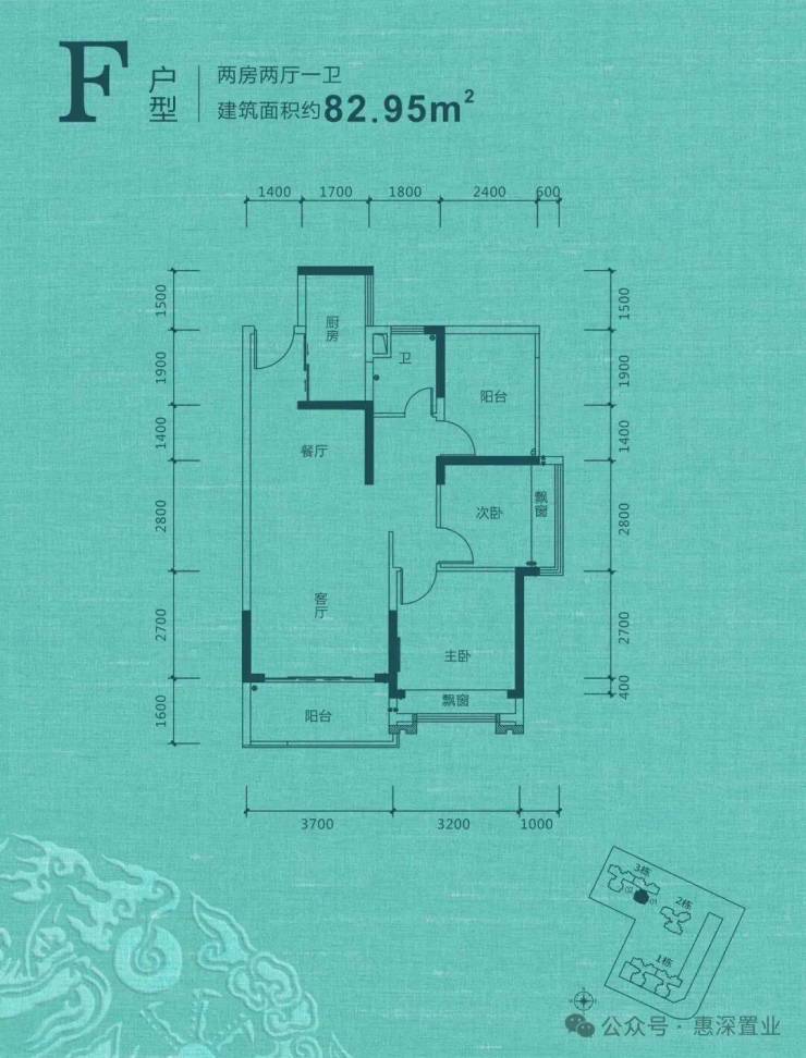 F户型 | 入户厨房,香味四溢,生活随心所欲;餐客厅外接阳台,空间运用更加自如;主次双卧,百变飘窗,揽四季穿堂风;通风对流,生活有度,舒享惬意人生。