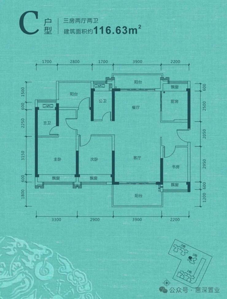 C户型 | 主次双卧,皆享飘窗,更显奢华生活;格局方正,结构紧凑,空间自然舒展;客餐厅双阳台相通,视野开阔显风范;阳光书房,书香弥漫,蓄养人生境界。