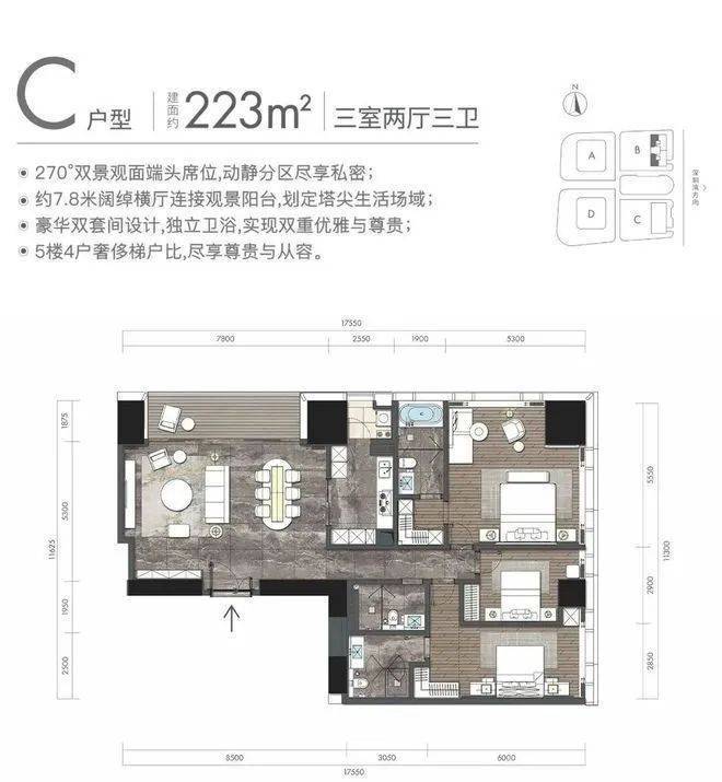 深圳湾沿岸三座标志性高楼巍然屹立,分别是春笋大厦(390米)、莱佛士酒店(350米)以及本项目(305米),彰显了其作为城市地标的独特价值。此外,本项目坐落于深圳湾一线滨海区域,享有无可比拟的居住优势,在整个深圳湾片区内堪称独一无二的理想居所。