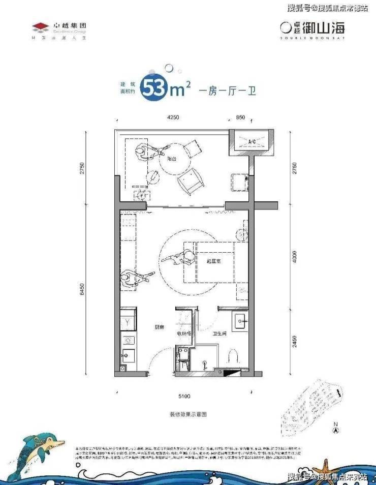 ▲53㎡样板间实景图 片区在售唯一开间达5.1米单房户型 ,视觉更宽广,景观面丰富动人, 阔绰阳台,承载舒阔假日时光, 超大采光面,一览山海景观。