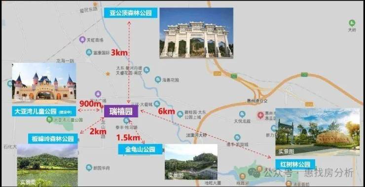 休闲配套:周边有大亚湾儿童主题乐园(建设中,直线距离项目约900m)、天然氧吧板嶂岭森林公园、亚公顶森林公园、红树林湿地公园、虎头山公园等资源。