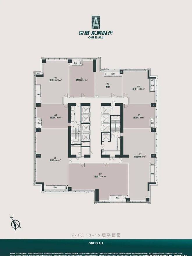 京基东滨时代产品主要为建筑面积约93㎡~235㎡云端公馆,所有户型均带阳台空间,室内无柱设计,搭配约4.5米层高,极致拉升着空间感;8梯9户的梯户比则让出行更加从容有度。