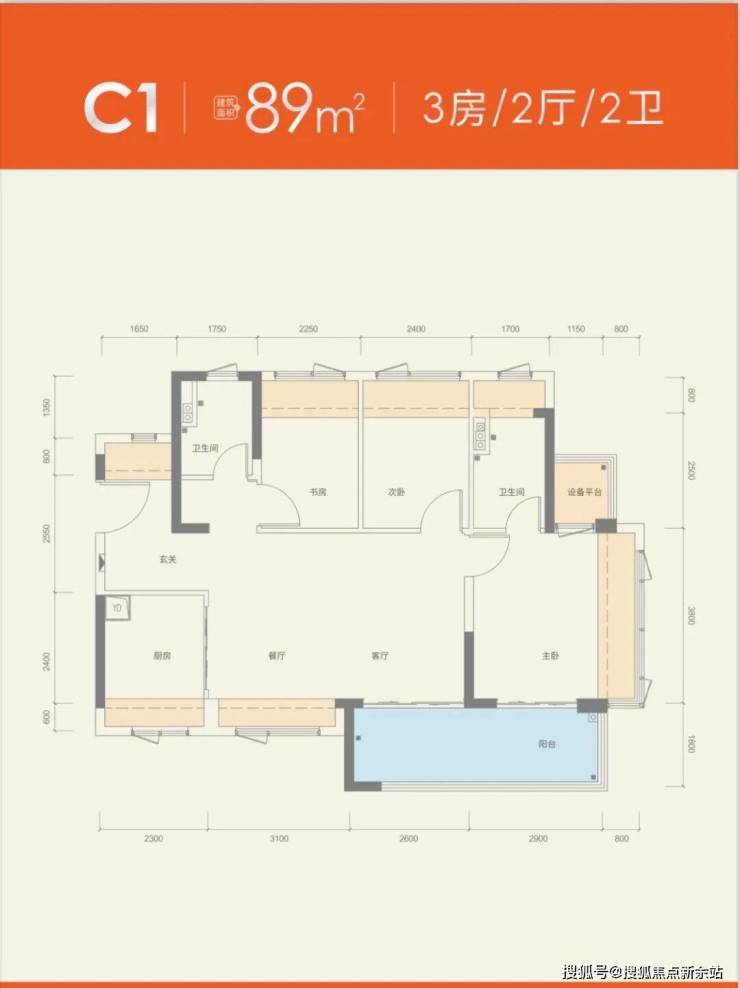 89㎡的3房2厅2卫,折后总价282-300万/套,单价3.16-3.36万/㎡。