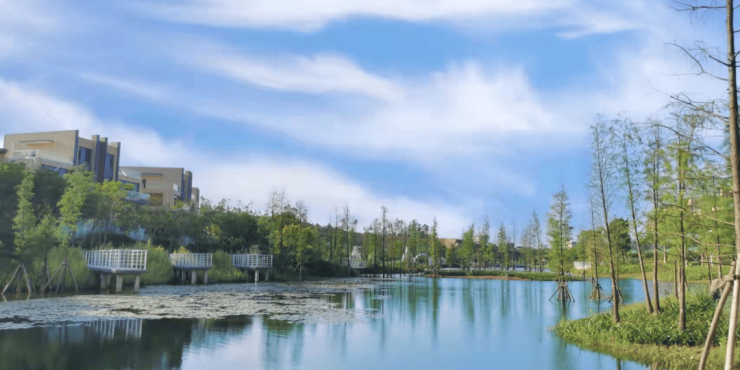 碧桂园润杨溪谷内含约5万㎡的水杉湿地滨水绿谷。