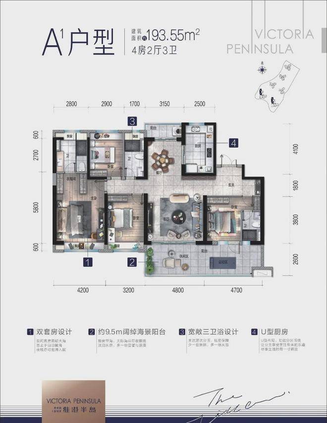 维港半岛整体设计风格为简洁、大气的现代主义滨海风格,干净简洁建筑语言最大化突出自然环境,建筑与自然关系是互融互透而非对立对抗。呈现别具一格的瞰海景观优势,产品结合山势台地错台布置,最大限度的为每一栋产品提供更多的瞰海景观。