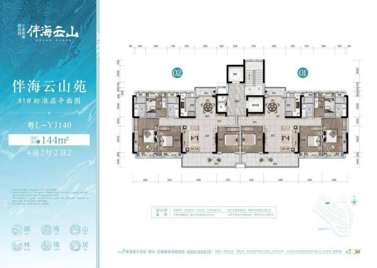 南向5.1米宽开间大客厅、四卧室观湖海景
