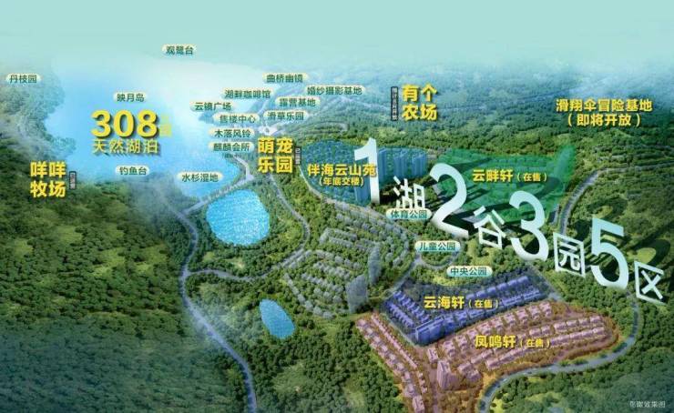 苑区内配套面积高达约1500 亩,以1湖2谷3园5区去规划格局,打造共业主娱乐的高端休闲生活配套,其中有亲子娱乐的《咩咩牧场》,生态养生《有个农场》, 休闲娱乐《萌宠乐园》,休闲漫生活《湖畔咖啡馆》,湖畔果岭《露营基地》,浪漫果岭《婚纱摄影基地》,滑翔伞《飞行基地》,客家餐饮《有家餐厅》。