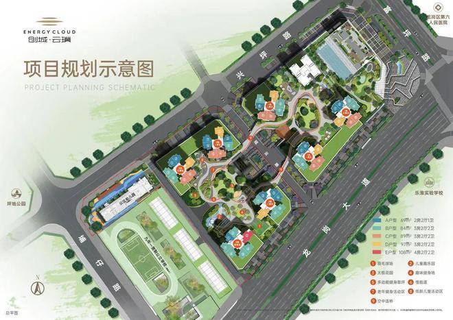 共分为两个地块开发,共由9栋超高层建筑组成,其中1栋1/2/3单元商品房50层,1栋4单元公共租赁住房54层,1栋5单元办公酒店38层,2栋1/2/4单元商品房49层,2栋3单元商品房50层,3栋是1所9班幼儿园。