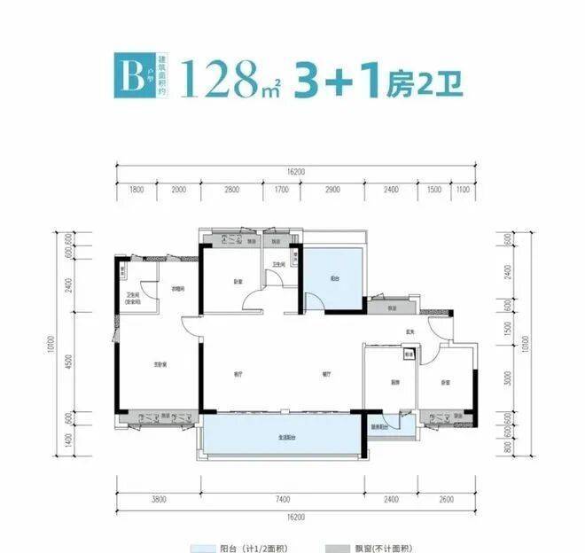 128㎡3+1房2卫