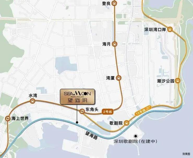 望海玥步行几分钟就可达2号地铁线“东角头站”,2站海上世界,4站后海。预计今年底,13号线二期南延段建成通车,1站地铁直达建设中的深圳歌剧院,3站接驳深圳湾口岸,届时将一线承接港客北上的流量。