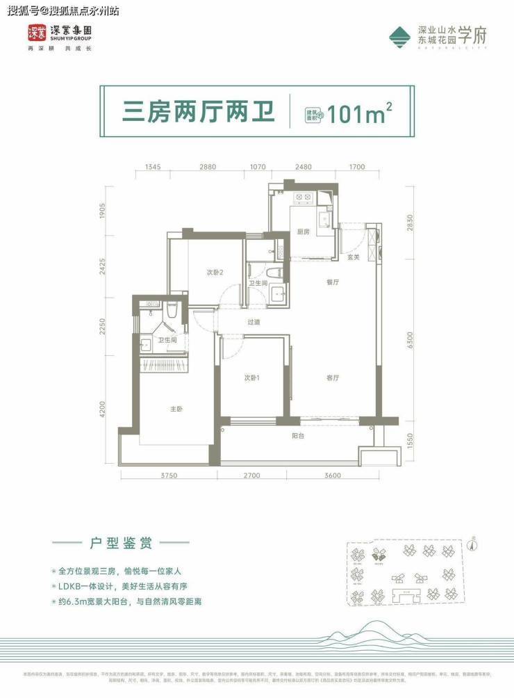 101㎡的3房2厅2卫,设计的是经典竖厅格局,进门入户玄关,客厅3.6米开间,LDKB一体化设计,三开间朝南,3个卧室,U型厨房,卫生间干湿分离,西南或东南朝向。