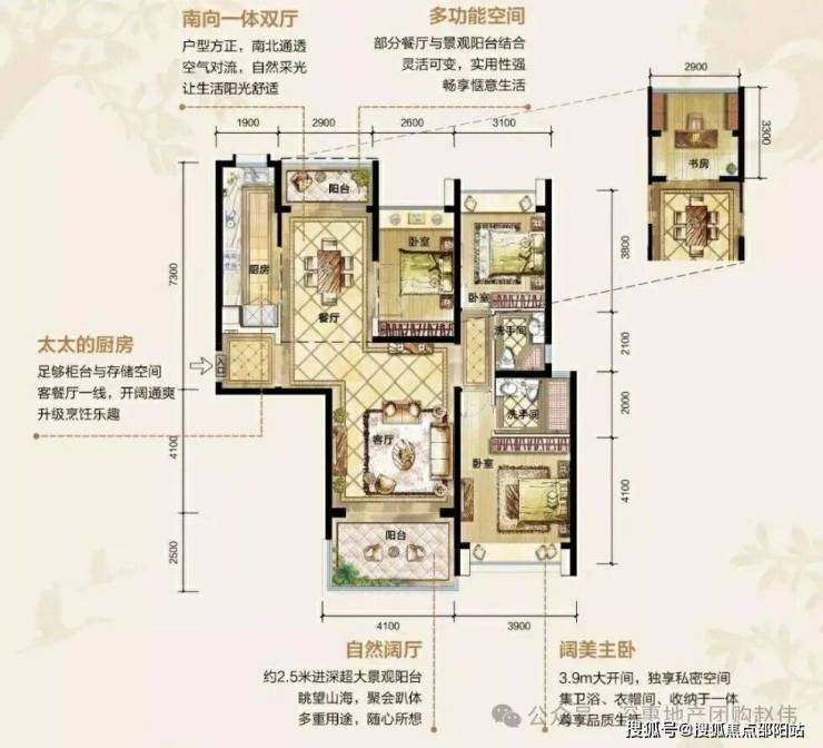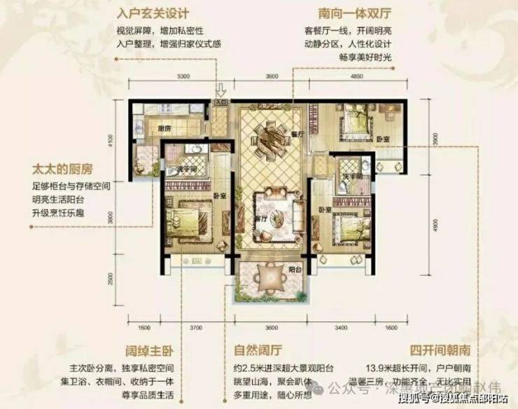 南北通透全明空间,奢阔三房