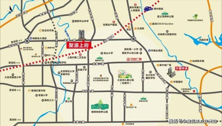 🥝🥝聚源上府营销中心24小时电话☎☎:400-013-9098【营销中心处认证】⁂⁂⁂聚源上府位于大亚湾西区龙海一路与东华大道交汇处西北侧,项目总占地6792㎡,总建筑面积36639.71㎡,由惠州市摩尔城实业有限公司开发,惠州聚源上府大亚湾西区龙海一路与东华大道交汇处西北侧 ,15分钟车程即达惠州南站。