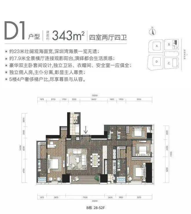 深圳湾沿岸三座标志性高楼巍然屹立,分别是春笋大厦(390米)、莱佛士酒店(350米)以及本项目(305米),彰显了其作为城市地标的独特价值。此外,本项目坐落于深圳湾一线滨海区域,享有无可比拟的居住优势,在整个深圳湾片区内堪称独一无二的理想居所。