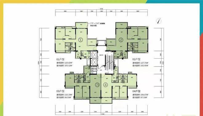 5栋:2-24层、两梯四户,108-128㎡三房