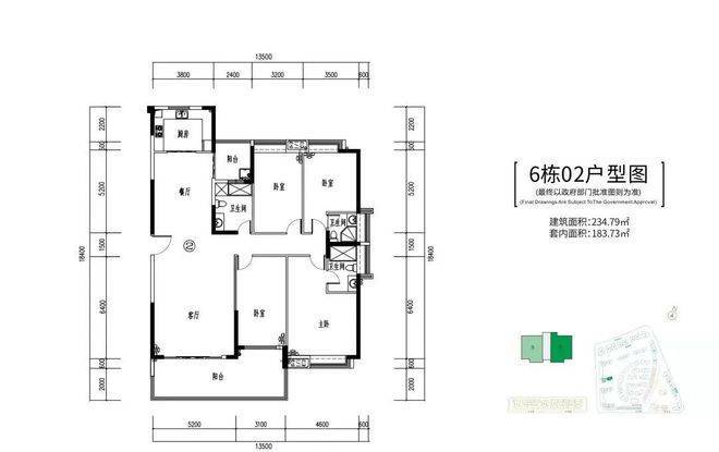 6栋:2-24层、两梯两户,219-234㎡四房