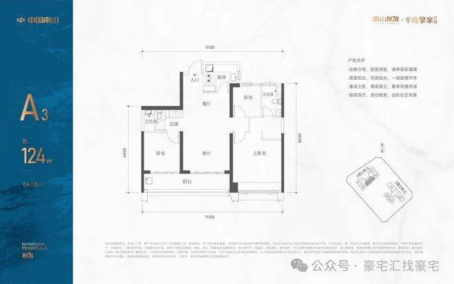1栋一单元A3户型:约124㎡