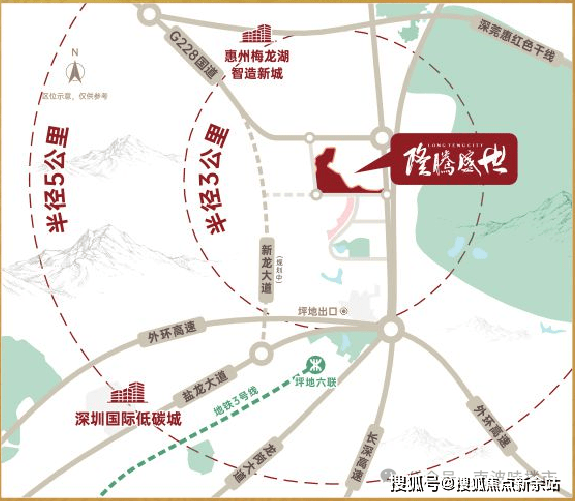 隆腾盛世,位于惠阳新圩,龙岗大道与东风路交汇处,雄踞深圳东进战略要地。新圩紧邻龙岗坪地街道。项目距离龙岗坪地仅一路之隔。享受着深圳的交通辐射红利。
