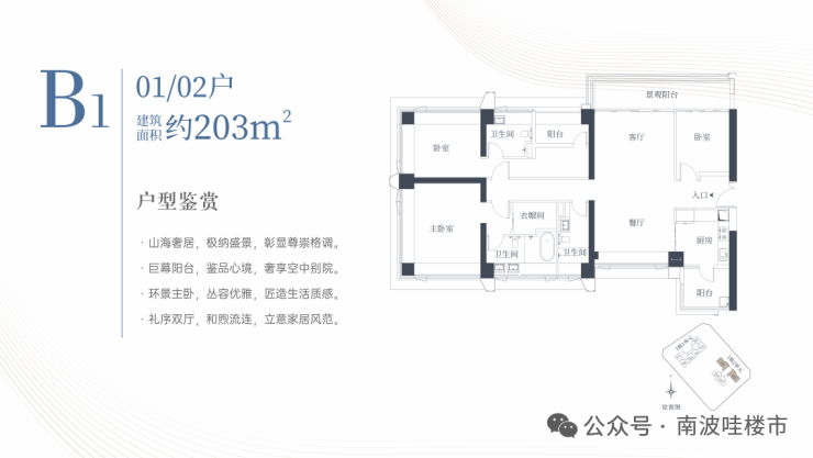 匠筑建面约124-203㎡全生命周期天幕户型,360°采光通风,270°环景主卧,山海日常推窗可得。背山面海,藏风聚气,家宅福泽之地。
