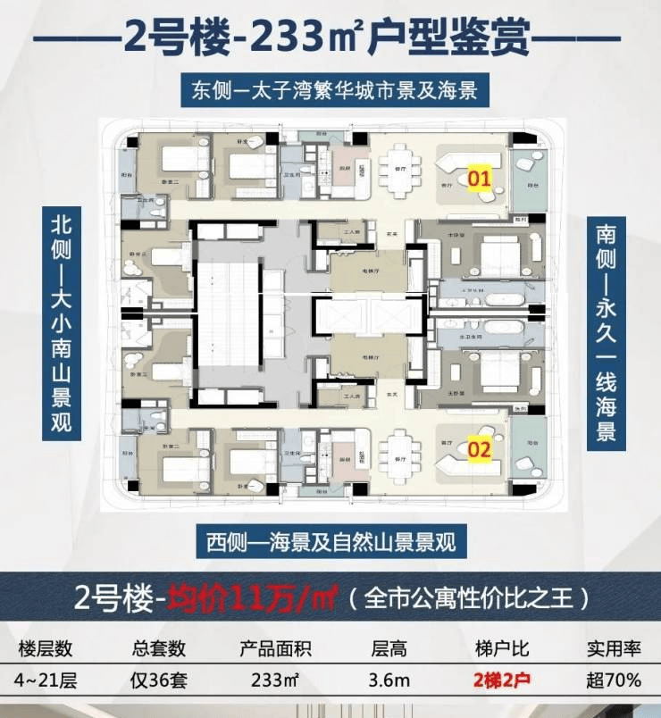 太子湾片区立意“一湾繁华,共享盛世”,以22万吨级邮轮母港为依托,构筑国际高端“居住坊”、“商业坊”、“邮轮坊”,配合超甲级写字楼、太子湾鲸域售楼处电话4000139098,邮轮中心、国际学校、国际医院、文化艺术等全方位城市综合配套,成就高端元素集萃纷呈的“城中之城”
