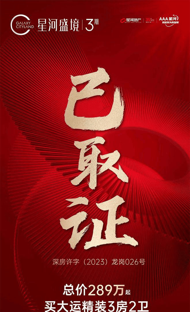 最新消息:星河盛境3期正式获取预售证,定于2023年12月3日开盘。此次共推售住宅房源467套,户型面积涵盖了83-96平的三房两卫, 107-113平的四房两卫产品,备案价3.9-4.6万/㎡,本次开盘折扣比较多,如现场验资99折,VIP登记3个99折,开盘5个99折,星河35周年3个99折,总价289万起,买入龙岗大运精装3房2卫,遇到可别错过,本次开盘还额外赠送全屋品质标准装修。