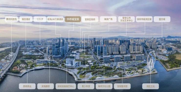 涵括湾区书城(湾区之眼)、欢乐港湾摩天轮(湾区之光)、深圳滨海艺术中心(湾区之声)、滨海廊桥(华侨城代建)等全功能、高规格设施。