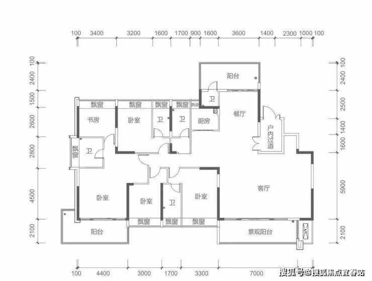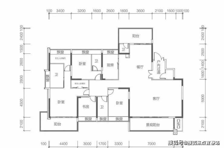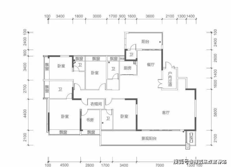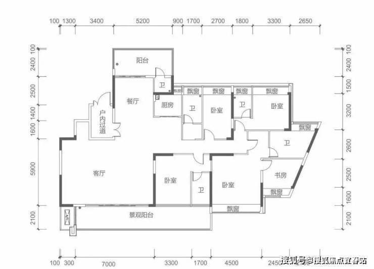 7栋奇数层 M户型建面约260㎡ 5房2厅5卫